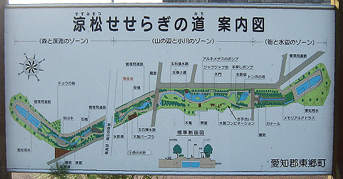 東郷町春木音貝辺り涼松緑道。このあたりは平針街道の休息地で黒松があり空気が冷ややかで旅人が休息に利用した場所から生まれた呼び名だそうです |