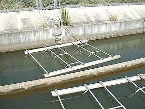 水路が地下へもぐるサイホンの入り口には鉄製のフロートのようなものがあり、多分流れ込む大きなごみ類をとめるものではないかと思いますが? |